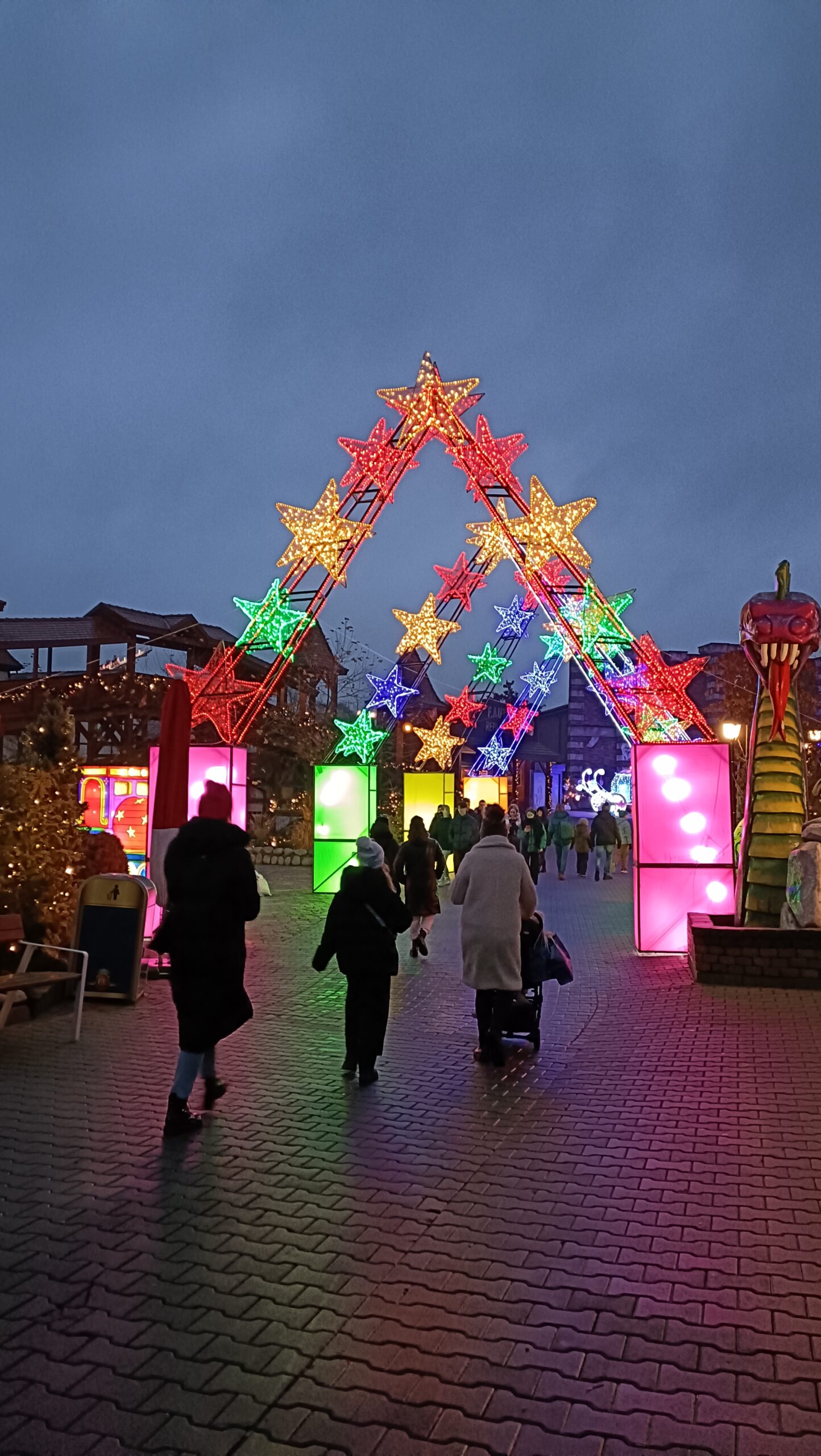 największy w Polsce ogród świateł, Energylandia zatorTym razem święty Mikołaj stacjonuje w Smoczym Grodzie tuż za jarmarkiem bożonarodzeniowym. Można przyjść, zrobić sobie z nim i elfami zdjęcie, a nawet skorzystać z warsztatów pisania listów, czy zdobienia pierników.